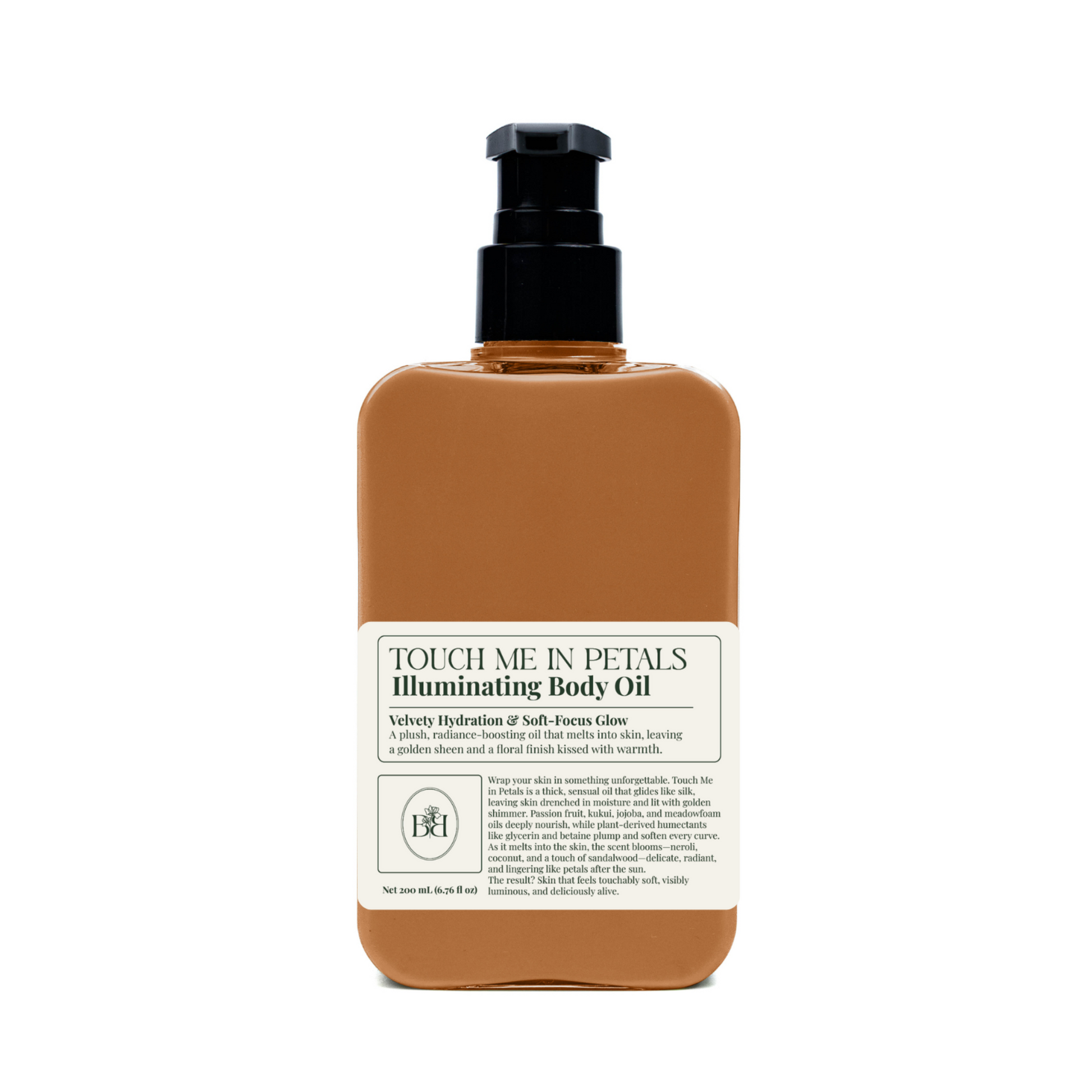 Reveal your skin’s most sensual glow with Touch Me in Petals Illuminating Body Oil, a rich, glistening infusion of botanicals and light designed to leave skin soft, luminous, and lightly kissed with golden shimmer. This indulgent treatment oil glides across the body with a silk-like texture, delivering hydration, radiance, and a delicate touch of fragrant warmth.